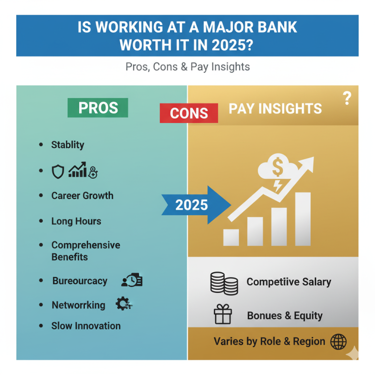 Is Working at a Major Bank Worth It in 2025? Considering a career at a major bank in 2025? Discover the pros, cons, salary insights, career paths, and whether it’s the right move for you